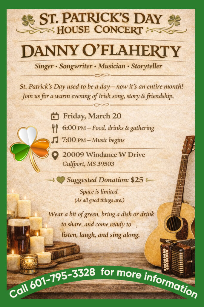 🍀 St. Patrick’s Day House Concert – Gulfport, MS